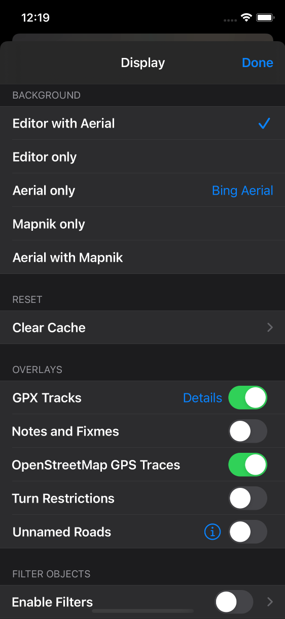 Quickly add points of interest01Edit nodes, ways, and areas02Free. No ads or in-app purchases. Just map.03Create, upload, and download GPX traces04Bing and Mapnik backgrounds available05Work online or offline seamlessly06